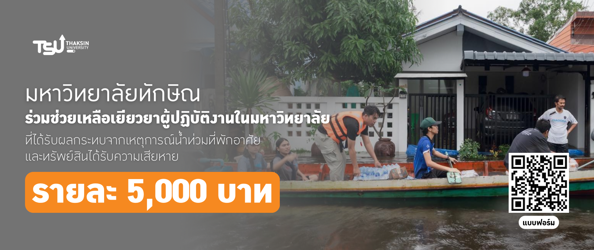 มหาวิทยาลัยทักษิณ ร่วมช่วยเหลือเยียวยาผู้ปฏิบัติงานในมหาวิทยาลัย ที่ได้รับผมกระทบจากเหตุการณ์น้ำท่วมที่พักอาศัยและทรัพย์สินที่ได้รับความเสียหาย