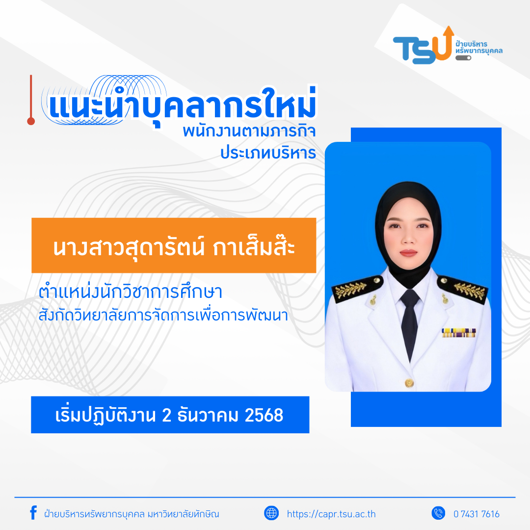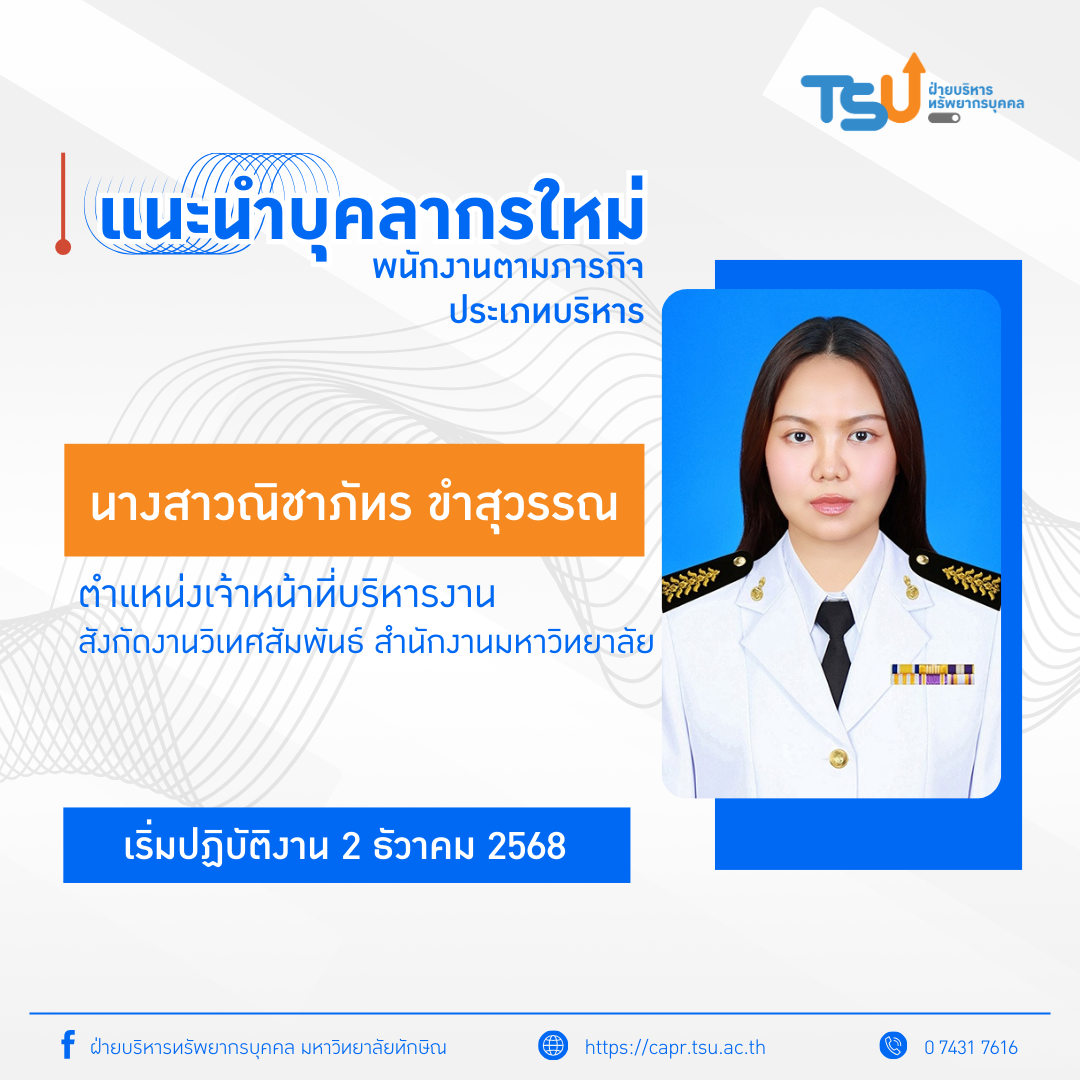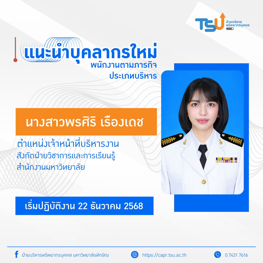 แนะนำบุคลากรใหม่ เดือนธันวาคม 2568